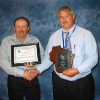 - North Central District : Lyle Lutz (l) presents the award to Charles Soltis, Village of Union CenterSoutheast District : Jim Bergles (l) presenting the award to Tom Steinback, City of OconomowocSouthern District : Ray Swanke (l) presenting the award to Joe Zakovec, City of JanesvilleWest Central District : Paul Sterk (l) presents the award to Rick Weikel, Black River Falls